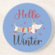 Uma bela ilustração de cão de patinação no gelo e as palavras: Olá inverno.