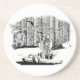 Reprodução do desenho de caneta e tinta "Fallen Comrade". Arte original de John A. Muir. Preto. Cavaleiro está ajoelhado, inclinado sobre sua espada, sobre um camarada caído, seu cavalo está esperando entre as árvores atrás.