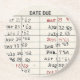 Cartão de biblioteca antigo com datas marcadas a partir dos anos 60.