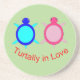 Esta porta copos de arenito incrível apresenta uma imagem fofa de uma tartaruga azul e uma tartaruga rosa lado a lado. O casal bonito só tem olhos para uns aos outros e pequenos rabos bonitos. A casca da tartaruga é feita de dois tons de rosa para a fêmea e azul para o macho. Estas caras estão realmente apaixonadas e fariam um presente excelente para os casais.