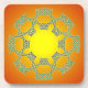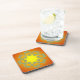 Um nó celta azul-verde contra uma porta copos de cortiça de fundo de explosão solar.