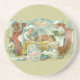 Crianças cozinhando com chocolate - Sucard de chocolate, ou Açúcar de chocolate, é a primeira etiqueta deste cartão publicitário de chocolate francês de excelente. A arte publicitária da vintage mostra três crianças, vestidas como padeiros adequados com chapéus de chefs e pombos. Estas crianças estão na cozinha vitoriana, trabalhando com chocolate em volta da mesa antiga. A garotinha está sentada no chão na frente, ralando seu chocolate. O padeiro do menino à direita está lendo receitas de seu livro de chocolate. O chef da esquerda está abrindo um pacote de bares de chocolate, todos prontos para comer, mas sabemos que todos os bons padeiros realmente usam seu chocolate para assares e outros doces de chocolate, e eles realmente não comem o chocolate até que esteja bem cozido. A decoração de fundo é um padrões vitoriano muito ornamentado, com uma placa azul e branca sobre o fundo, e espirais de azul, branco e castanho sobre o fundo desta imagem publicitária antiga. As crianças estão vestidas de azul, verde, vermelho e branco.