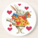 Porta copos redonda do arenito com um vintage Alice na imagem do país das maravilhas do coelho branco no regalia completo entre corações vermelhos lunáticos. See que combina a porta copos do porta copos, a de papel e guardanapo plásticos. Veja a coleção inteira da porta copos do país das maravilhas na seção das portas copos de FOOD/BEV |.