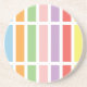 Padrão geométrico linear, retangular, listrado, de tons de arco-íris pastel azuis, laranja, verde, rosa, roxo, vermelho e amarelo.