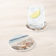 Deixe sua mente se mover enquanto pensa sobre a praia e colecionando conchas marinhas. Muitas conchas marinhas na areia ao longo da costa. Água azul e uma linha de árvore do outro lado do lago.