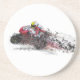 Um design de um motociclista de alta velocidade deixando poeira e detritos atrás dele.