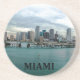 A foto excitante da skyline de Miami como o sol ajusta-se. Esta foto da paisagem destaca a skyline de Miami Florida como vista da água. Um navio está no primeiro plano. No fundo estão a skyline e a ponte da cidade contra um céu nebuloso e um sol de ajuste. Ideia do presente de Miami excelente, Florida para aqueles que amam Miami, Florida, skylines, a praia, oceanos, ou viagem. A lembrança também bonita de Miami, de Florida ou o presente para alguém dirigiram a Florida em férias. Estas portas copos de Miami olharão desvanecido devido à absorvência da porta copos.