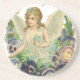 Porta-copos De Arenito Anjo Páscoa vitoriano com Flores Pansy Roxas