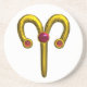 Porta-copos De Arenito ARIES ZODIAC BIRTHDAY JEWEL RED RUBY, Dourado, bra