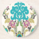 Porta-copos De Arenito Damask Floral Patternos Plum Turquoise
