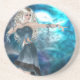 Fantasy Sky Siren Céu Ereal Azul - Lua de cheio brilhando através das nuvens - Linda e loira Deusa da Lua, Sky Siren apontando para seu lindo carregando branco de pomba um rosa solteiro