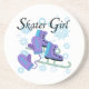 Nossos t-shirt do design da menina do patinador, as canecas, as bolsas, os cartões, os travesseiros, os pulsos de disparo de parede, as lembranças, os hoodies, e outros artigos de patinagem do tema caracterizam um par de skates do azul e da lavanda e mitenes em uma corda cercada por lotes de flocos de neve e do texto invernal que lê a menina do patinador!