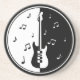 Design preto e branco de uma guitarra elétrica com notas de música. Use o botão personalizar para personalizar.