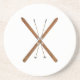 Escos cruzados de madeira e bastões de esqui.