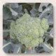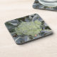 Esta incrível porta copos de cortiça mostra uma fotografia detalhada de uma cabeça de brócolis crescendo em um jardim. Os floretes verdes fortemente recheados estão rodeados pelas grandes folhas exteriores do vegetal.