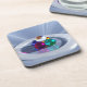 Uma imagem 3D criada em Vue, cheio de reflexões e luzes brilhantes de todas as direções. Cinco esferas coloridas de vidro azul, rosa, turquesa, laranja e diamante permanecem em uma pirâmide cercada por um anel branco translúcido. Eles sentam-se sobre um fundo deslumbrante de raios claros, azuis e brancos que convergem sob as cinco bolas de cristal.