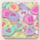 Fotografia de corações de conversa impressas nas bordas da porta copos.