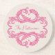 A Porta copos elegante e sofisticada de "Chic Damask", que apresenta um fundo bege suave e um ornamento na moda amortecedor, floresce em magenta. Esta design moderna é fácil de personalizar com o seu próprio texto. Clique em "Personalizar" para encontrar mais opções de personalização.