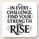 Porta copos inspiracional com a frase "Em cada desafio, encontre sua força e ascensão".