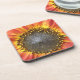 Esta incrível porta copos de cortiça apresenta uma fotografia detalhada e detalhada de um girassol bonito vermelho e amarelo. A fotografia foi tirada por meio de macrofotografia e mostra as vibrantes cores da pétala vermelha e amarela e o detalhe intrincado dessa bela flor.