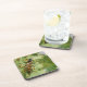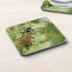 Esta incrível porta copos de cortiça mostra uma fotografia de perto de uma mosca preta e amarela colorida em uma folha hollyhock. A foto foi tirada usando macro fotografia para revelar todos os pequenos detalhes como as veias-folha no hollyhock e o padrão nas asas da mosca-do-mar.