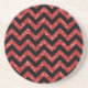 Hip e Trendy Chevron Glitter Porta copos de aparência. Esta porta copos legal apresenta um padrão de zag de zague em forma de guiões em cima de um fundo de brilho vermelho da arte digital. Adicione texto a este design para lhe dar um toque pessoal.