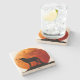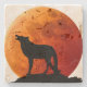porta copos de pedra na moda com gráficos de uma grande lua laranja, com a silhueta de um lobo solitário uivando. Personalize para adicionar seu próprio texto. ideia de presente de excelente para qualquer um.