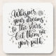 Porta copos inspiracional com a frase "Sussurrem seus sonhos para as estrelas, deixem-nos iluminar seu caminho".