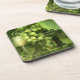 Porta copos com tema "Vinho", que apresenta uma pintura original de um copo de vinho branco, emoldurado por uvas, folhas verdes e vinhas, com os seus textos personalizados (engraçados ou outros).