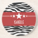 Tendy e moderna Porta copos Sassy Star Zebra Sandstone, com um fundo de impressão em preto e branco e uma borda vermelha ousada, enfeitiçada com um divertido motivo de estrela. Este design feminino pode ser personalizado com o texto personalizado de sua escolha. Clique em "Personalizar" para encontrar mais opções de personalização.