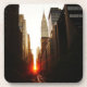 Ideia bonita de um por do sol dramático que ajusta-se diretamente sobre a 42nd rua ao lado de Chrysler que constrói na Nova Iorque conhecida como o por do sol de Manhattanhenge.
