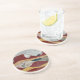 Uma paisagem abstrato com cores e texturas únicas mostrando uma cena do deserto com um sol azul ascensão e um cacto em tons de vermelho, cinza, bege e azul.