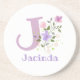 Design apresenta Monograma & Nome com Flores em ambos os lados no estilo pastel de cor de água. O nome de exemplo é Jacinda. Pode ser para qualquer um com um nome começando com J.