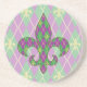 Um padrão harlequin de verde e roxo se transforma em um argilo lúdico com uma camada de contornos de diamante de ouro e flur de lis, criando um padrão divertido e colorido perfeito para qualquer nova orleans influenciou a celebração do Mardi Gras. O padrão é mascarado atrás da silhueta de uma flor de lis para adicionar uma nota final divertida.