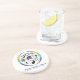 A porta copos redonda com logotipo pacífico da igreja unitária cercada por 8 dos mundos major religiões.