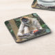 Porta copos plástica dura com a parte traseira da cortiça que caracteriza uma foto de um macaco de aranha.