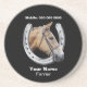 Uma porta copos do arenito com uma foto de uma égua de Galês da castanha dentro de uma ferradura, em um fundo preto. Um presente útil do negócio para farriers ou instrutores da equitação, seus clientes nunca esquecerá seu número de telefone.
