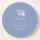 Adicione um toque de elegância do eterno à sua mesa de casamento com esta porta copos de arenito personalizada com flores azuis e poeirentas de cor aquosa. Linda e adorada com os nomes do casal e a data do casamento, esta porta copos durável e absorvente faz um favor ou uma manutenção perfeitos para os seus convidados. Ideal para temas de casamento românticos e inspirados na natureza.