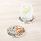 As florestas do outono apresentam porta copos tematizada de raposa e texugo com folhas, bagas, cogumelos e bolotas sobre fundo de cinza leve.