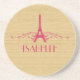 Porta copos de Sandstone Flourish francês elegante e chique, com fundo de aparência falsa em madeira e design de Torre Eiffel em magenta, enfeitiçados com cascatas de espirais na moda. Esta design de moda e moda é fácil de personalizar com o texto personalizado de sua escolha. Clique em "Personalizar" para encontrar mais opções de personalização.