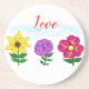 O amor é escrito em vermelho contra o céu azul claro e nublado. girassol pintado à mão, flor púrpura delicada, flor amarela fuchsia brilhante com folhas verdes sobre fundo branco. Adorável pelos meses de primavera ou verão ou em qualquer época do ano trazer o dentro para o ar livre para uma sensação leve e arejada. Trabalho de arte gráfico original por TamiraZDesign.