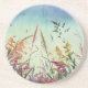 Uma bela cena de flores silvestres vibrantes e coloridas no conjunto de ventos em frente a um céu azul e verde com estrelas.