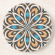The repeating circular forms with intricate inner detailing make this pattern geometric and organic with a flower mandala patterns. The subtle color accents bring in warmth in brown, tan, turquoise, orange, white and black.