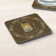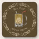 Porta copos castanha com um quadro bonito e ornamentado ao redor do chão de cerveja. Diz: "Você bota meu sorvete". Uma brincadeira com palavras da frase "Você boia meu barco". Bonita, velha e elegante.