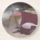Uma bela paisagem com texturas únicas mostrando um farol do lado do penhasco e oceano noturno nebuloso com lua ascensão e céu estrelado em tons de vermelho, rosa, ouro, prata e azul.