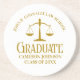Esta porta copos de graduação em Direito do Chic Gold na escola mantém a figura da tipografia moderna para uma classe de formando de 2025. Personalize com seu ano de graduação sob a escala de justiça para um advogado comemorativo ou presente de advogado personalizado excelente.