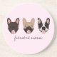 Ilustração de três cachorros de Bulldog franceses de diferentes cores.