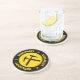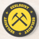 Geólogo - porta copos de arenito amarelo e preto com letra colegial e martelo de rock cruzado.