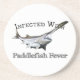 Poucas coisas se comparam a pegar um poderoso peixe-pá. Não é fácil e poucos podem gabar-se. Cor do cheio imagem detalhada de um peixe-espada monstro com o texto Infectado com Febre de Paddlefish.