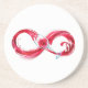 Símbolo infinito do fluxo contínuo de vinho tinto que entra em vidro de vidro sobre fundo branco.